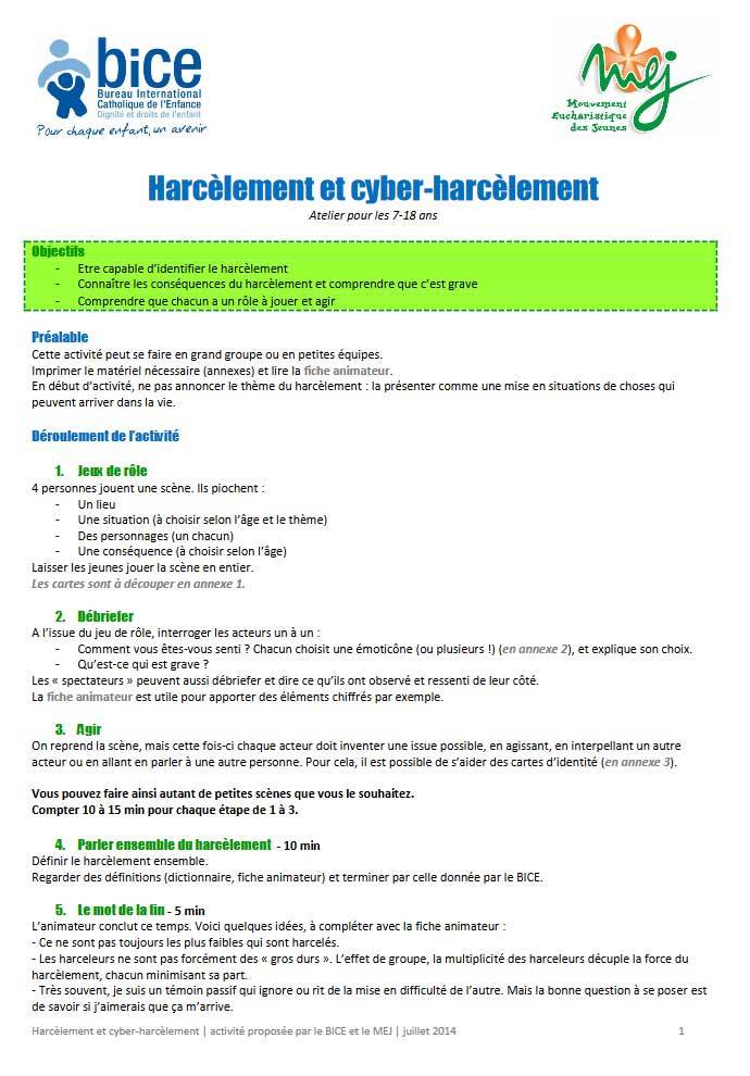 harcèlement on dit NON Télécharger la fiche animation (PDF)